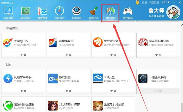 1、首先打開魯大師,鼠標點擊選擇【裝機推薦】。
