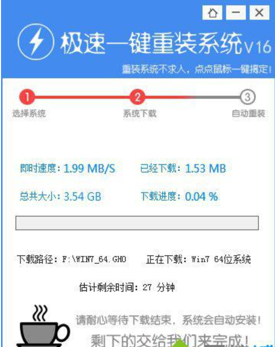 3、此時將會進入系統鏡像下載過程,耐心等待,系統在下載完成之后會自動安裝系統;