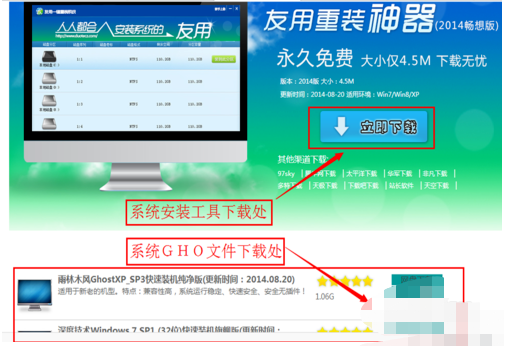 1、首先打開友用一鍵重裝系統工具或瀏覽器搜索友用一鍵重裝系統也可找到立即下載,點擊進入下載界面。