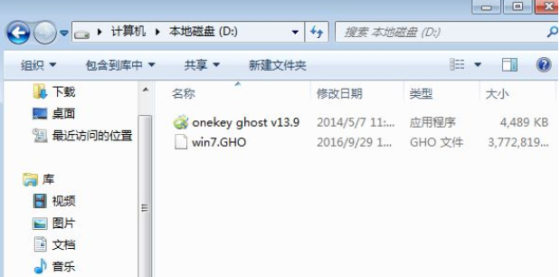 2、接著我們將win7.gho文件和Onekey ghost工具剪切放到同一目錄,比如D盤,不要放C盤或桌面當中。