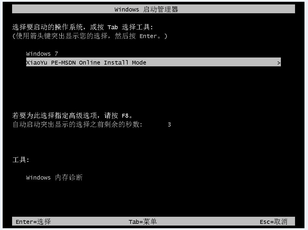 5、如圖進入啟動界面后選擇“XiaoYui PE-MSDN Install Mode”后進入PE系統。