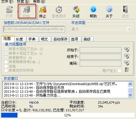 借助工具小白網解壓密碼破解: