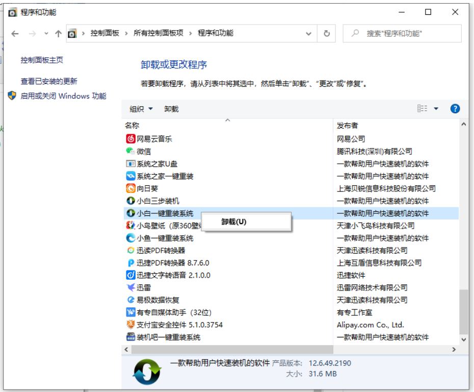目前市面上有很多一鍵重裝系統軟件,小白一鍵重裝系統工具便是其中之一。有網友使用它重裝windows系統后想要卸載掉軟件,但是不知道重裝系統的軟件怎么卸載。其實卸載的方法是比較簡單的,今天小編就教下大家一個重裝系統的軟件卸載教程。