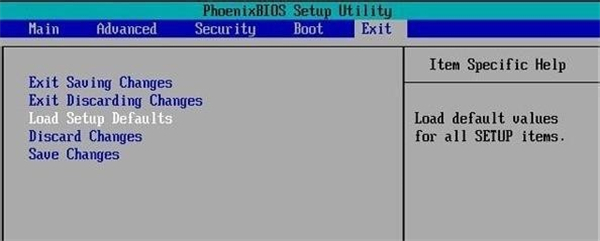 ②選擇【Exit】菜單界面下面的【Load Setup Defaults】并回車,選擇【Yes】之后,再次按回車。