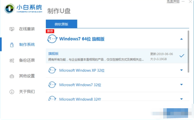 1、首先制作u盤啟動盤,在可用的電腦上搜索下載安裝小白一鍵重裝系統軟件并打開,插入空白u盤,點擊開始制作。
