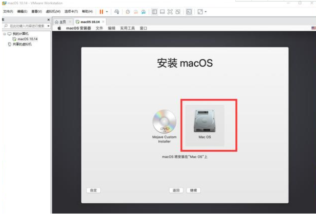 13.再次返回【macOS安裝器】頁面后,就可以找到【剛創建的磁盤】,點擊【繼續】。