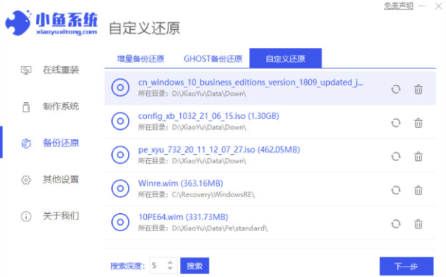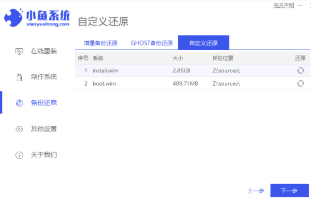 2、打開工具勾選備份還原,找到已下載的win10鏡像。