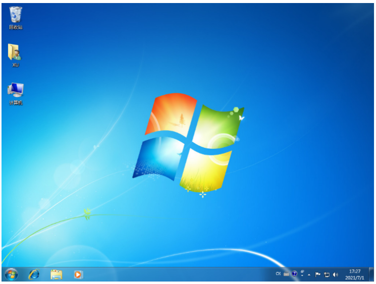 7、耐心等待重啟電腦后進入新系統桌面即電腦重裝win7系統完成。