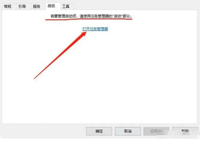 3、在系統配置對話框,我們選擇“啟動”選項卡,點擊打開任務管理器。