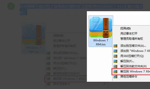 2、點開剛剛下載好的大地系統右擊選擇【獲取到Windows 7 X64】解壓縮文件。