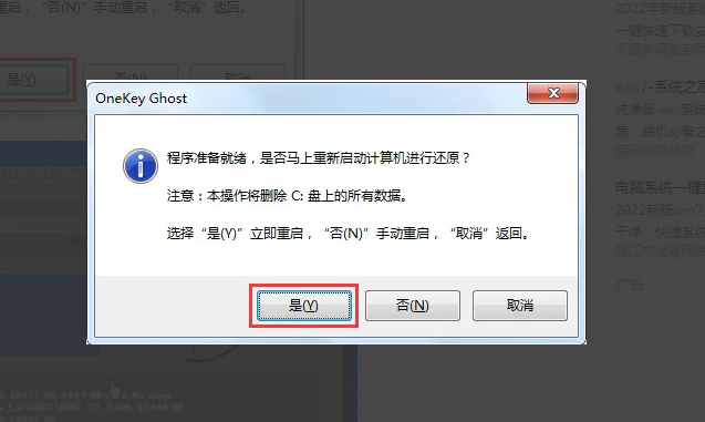 4、這個時候會彈出一個確定提示窗口,點一下【確定】執行操作,計算機將在下一步后自行重啟開始安裝,全是自動化安裝。
