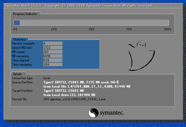 7、系統部署完成后,就可以進入到系統桌面,自動會創建網絡,在此過程中請不要進行重啟或關機等操作,避免出現無法上網的問題。網絡創建成功后,會再度重啟,這時候就可以正常地使用電腦了。