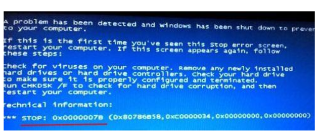 在用u盤裝win10系統的過程中,碰到系統提示藍屏代碼為:0x0000007B代碼,即碰到圖中藍屏代碼的情況,是由于硬盤模式不兼容,一般只需進入bios修改硬盤模式便可。