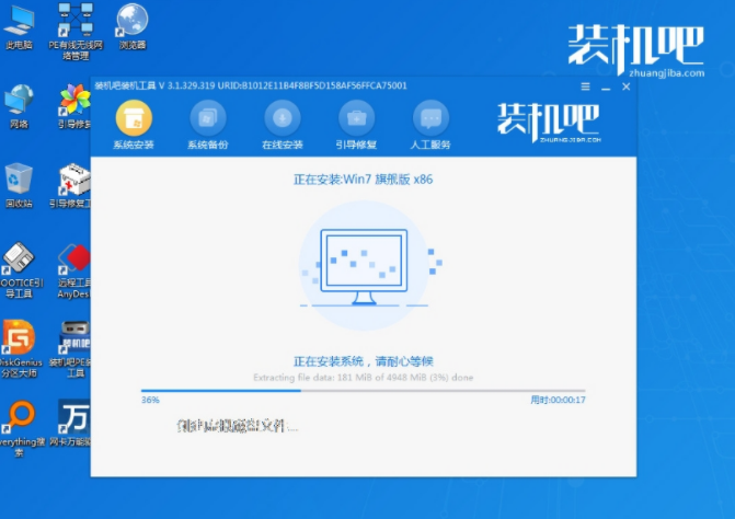 4、在pe系統內,裝機吧裝機工具會自動安裝系統。