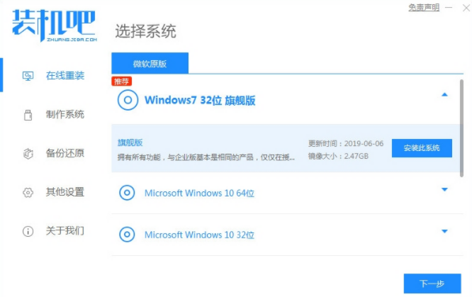 1、首先在自己的電腦上安裝好裝機吧一鍵重裝系統軟件,打開后就可以選擇需要的系統安裝。