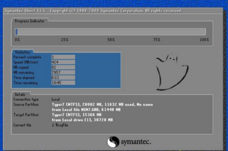 5、重啟電腦后,進入到這個界面,執行C盤格式化以及大地系統還原到C盤過程。