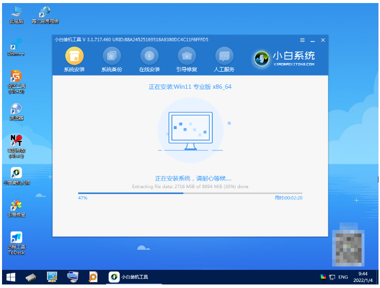 5.裝機工具此時就會自動進行系統的安裝操作,我們無需手動干涉。