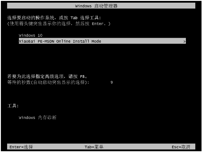 4.重啟電腦后,在菜單上選擇第二選項,按回車進入。