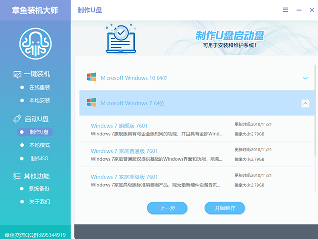 2、選擇我們需要安裝的win7系統,點擊開始制作。