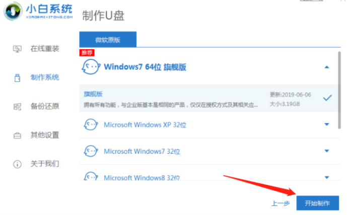 2、選擇我們需要制作的系統,點擊開始制作。