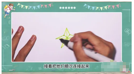 2.然后再沿中點畫五條短線,接著把它們順次連接起來。