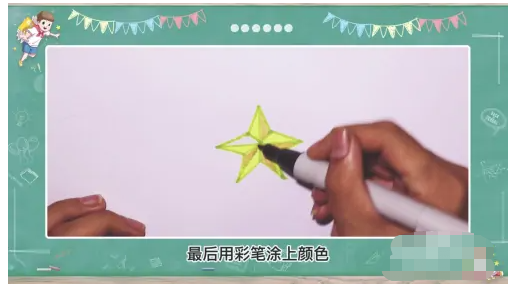 3.最后用彩筆涂上顏色,一個簡單的五角星就畫好了。