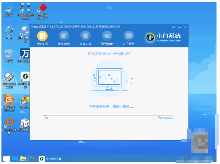 6.進入pe系統界面后小白裝機工具會自動重裝系統,請大家耐心等待。