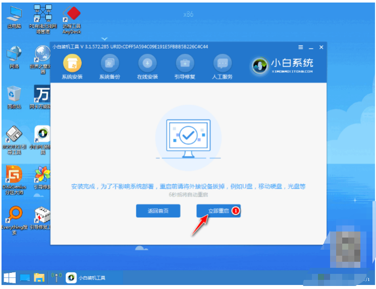 7.安裝完成之后,提示我們重啟電腦時,我們點擊立即重啟電腦。