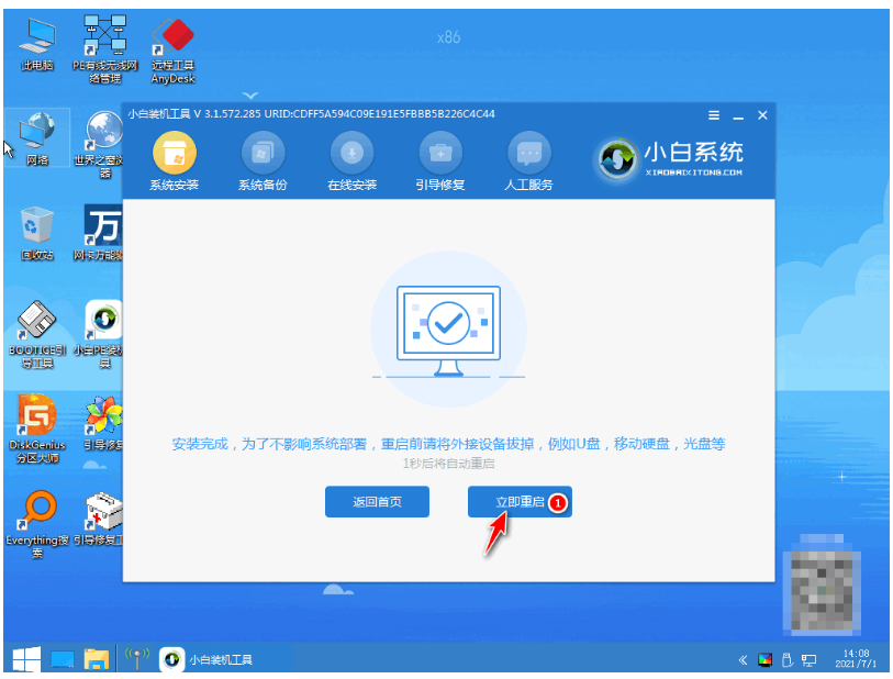 8.耐心等待系統安裝完成后,拔掉u盤點擊“立即重啟”電腦就可以了。