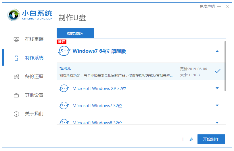 2.檢查我們需要安裝的win7系統,點擊界面右下角的開始制作即可。