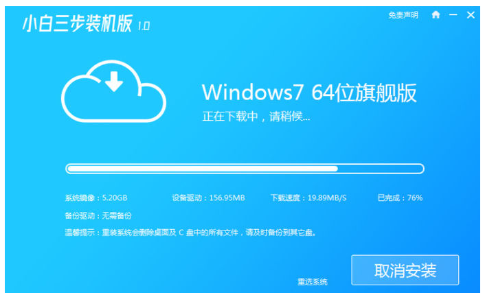 軟件版本:小白三步裝機版v1.0+小白一鍵重裝系統v2290
