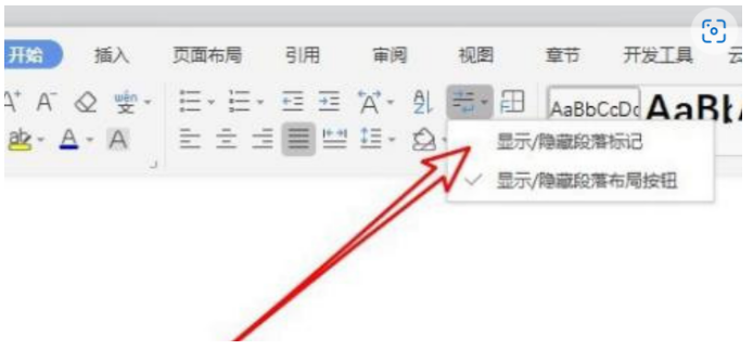 3、鼠標點擊顯示/隱藏段落標記的菜單項。