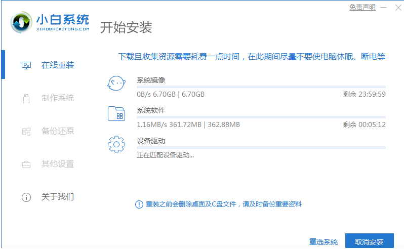 3.自動將下載完成的文件進行部署,然后重啟電腦即可開始安裝系統。