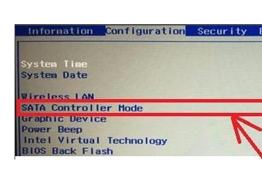 1、按下開機鍵,然后不停的點擊BIOS啟動熱鍵,不停的主板按鍵不同,在開機品牌logo界面下方一般會有顯示,也可以嘗試F2、F12、ESC、Del這幾個按鍵進入BIOS,進入BIOS左右方向鍵切換至configuration(電腦配置項),找到SATA Controller Mode(硬盤模式)。