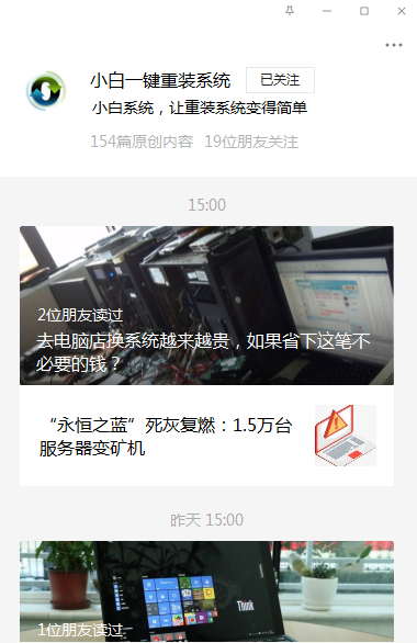 小白現在開通的也有微信公眾號,通過微信公眾號您可以閱讀最新資訊也可以了解一下小白產品的最新動態內容。