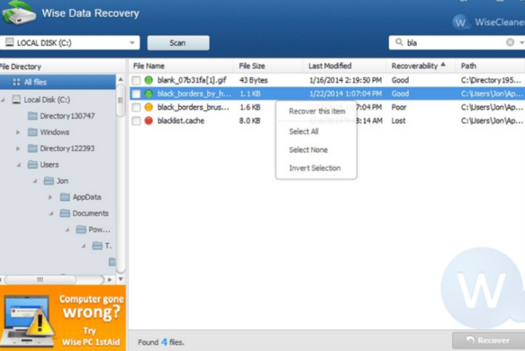 2.明智的數據恢復用于恢復已刪除的照片,文檔,視頻和電子郵件等。不過僅適用于Windows 10/8/7,XP和Vista。