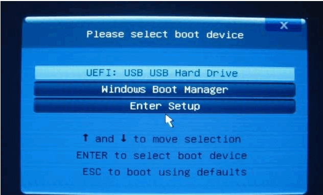 5.上面不是U盤安裝好了,所以插上U盤,重啟!狂按啟動熱鍵,有的電腦是F2,有的是ESC,需要自己檢查。按下熱鍵重啟到此界面,然后選擇我們安裝的系統。