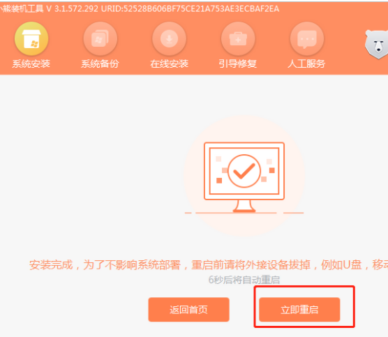 第五步,等小熊部署安裝完系統之后,大家需要“立即重啟”電腦。