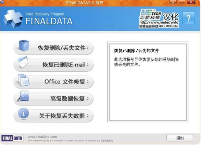 遇到誤刪并且回收站還找到不到、病毒干擾無法找到文件數據、物理故障造成磁盤無法讀取或者是磁盤格式化丟失文件信息時,FinalData都能直接掃描磁盤數據,并快速恢復文件內容。只需進入文件首頁,根據情況選擇恢復模式,等待幾分鐘完成數據掃描后即可選擇對應的數據內容進行恢復。