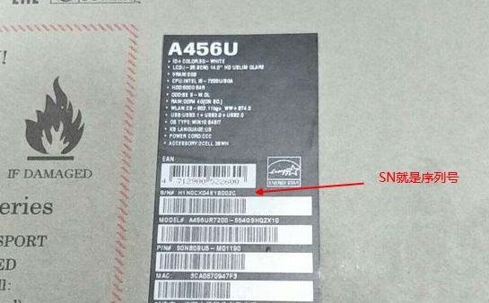 1、在筆記本機身背面有個標簽,一般會寫著S/N或Serial Number,有的沒有寫,而是一串代碼,比如ECN0CV175881509;