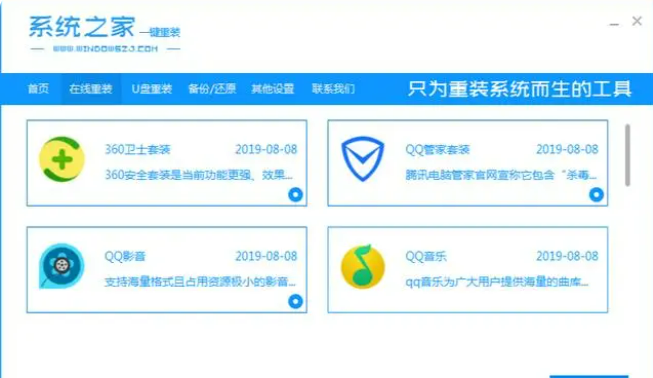 2,關閉殺毒軟件,打開系統之家一鍵重裝系統,選擇“在線安裝”進入。