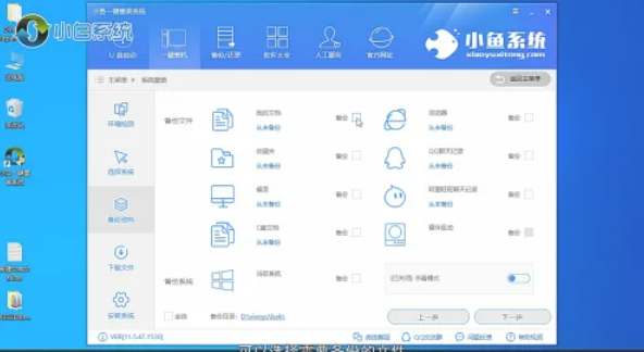 4、在備份界面可以選擇需要備份的文件,點擊“下一步”,點擊“安裝系統”,等待自動下載與安裝系統即可。
