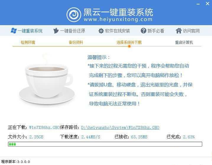 二、黑云一鍵重裝系統過程: