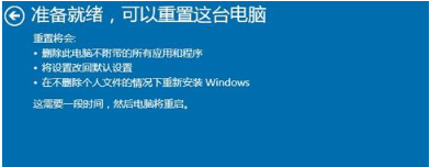 5.當提示準備就緒時,我們點擊“重置”系統就會開始進行重裝。