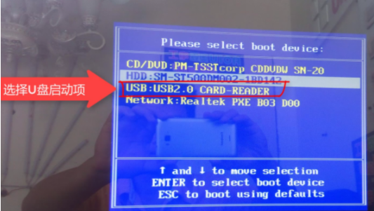 2、插入u盤進電腦,重啟按f12等啟動熱鍵,在Boot Menu界面選擇 USB字眼的啟動選項,方向鍵上下選擇按回車鍵確定。