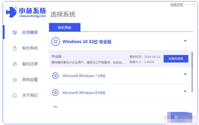 1、我們先下載小魚裝機軟件,打開之后軟件界面如下圖,然后找我們我們要下載的win10系統。