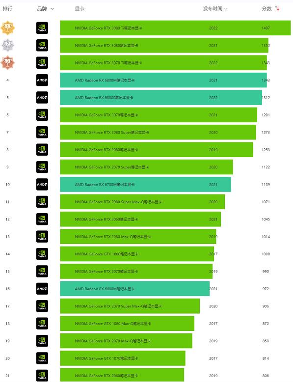 最近想要找到一款高性能顯卡的筆記本電腦,但是自己對顯卡性能排行天梯圖不是很了解,不知道具體的情況怎么樣。我們可從最新天梯圖獲悉,下面小編就分享下筆記本顯卡性能排行天梯圖2022年最新。