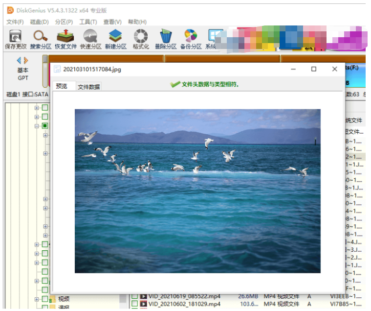 4、數據恢復成功之后,即可通過預覽文件判斷文件是否修復成功。預覽失敗的文件,說明已經損壞了,文件最終復制出去也是損壞的。而如果丟失的文件已經被完全覆蓋,那么掃描結果當中則不會顯示該文件。