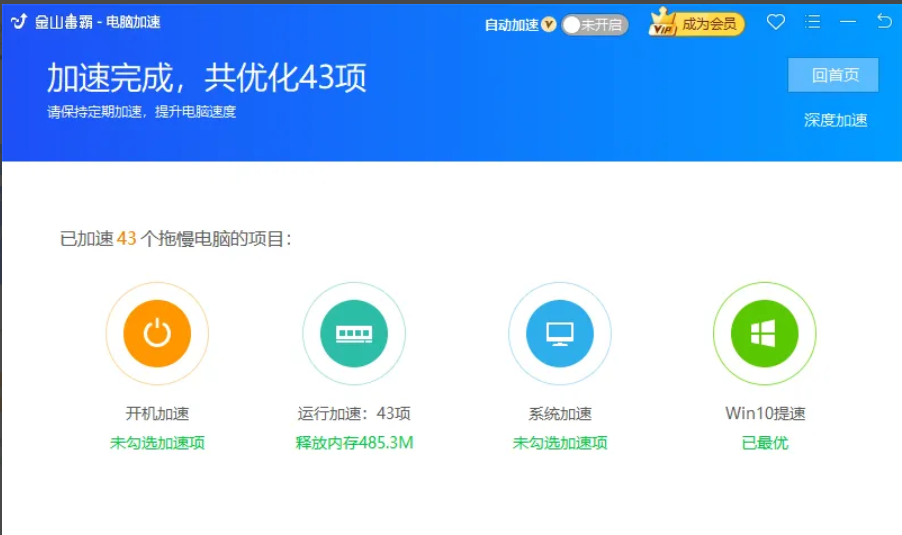 3、等待系統加速完成即可解決新電腦運行慢的現象。