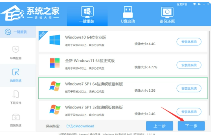 3、進入界面后,用戶可根據提示選擇安裝Windows7 32位或者Windows7 64位系統,點擊下一步。